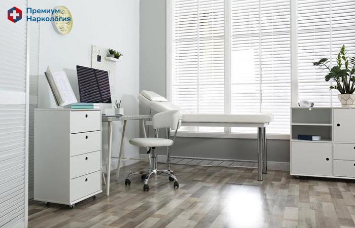 Нарколог проводит осмотр, измеряет давление, пульс и оценивает общее физическое и психоэмоциональное состояние пациента.